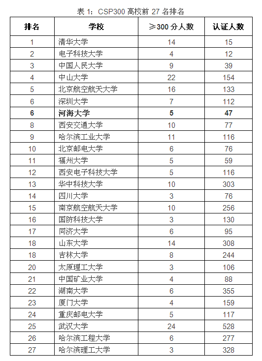 此次认证考试共有来自全国200多高校的6931人参加,满分500分。认证成绩400分以上的有44人,月舞直播 1人。认证成绩在300分以上且参加认证人数在10人以上的有39所院校,共238人。月舞直播 排名第6,各校300分以上人数排名(CSP300)(见表1)。